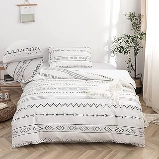 OEESYA 布団カバー3点セット シングル 寝具カバーセット 掛け布団カバー ボックスシーツ 枕カバー 洋式・和式兼用 洗い替え速乾タイプ ベッド用 布団用 四季適用 北欧風(ホワイト・シングル・3点セット)