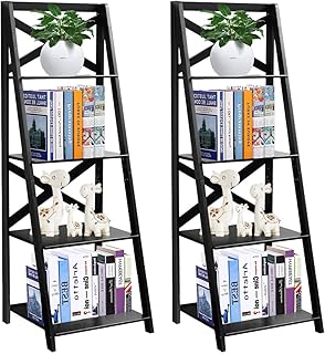 4-Tier Ladder Shelf Bookcase (Set of 2), Leaning Free Standing Wooden Frame Decor Bookshelf, Storage Flower Shelf, Plant Display Shelf for Home Office