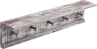 5 Hook Rustic Wood Wall Mounted Floating Bathroom Shelf and Towel Rack