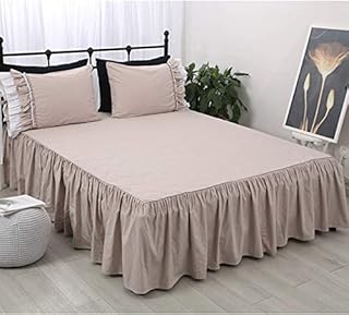 ベッドスカート ベットカバー ベッドシーツ 布団カバー セミダブル シングル シングルベッド ダブルベッド シングルベッド 寝具 無地 綿100% 洗える シーツカバー おしゃれ フリルデザイン 伸縮 高通気性 純天然 高質感 雰囲気アップ 四季適用 (グレー, 137*190+38cm)