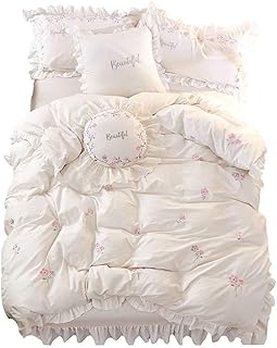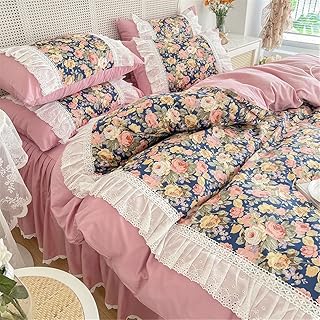 LAIKOR 寝具カバーセット ふとんカバー 掛け布団カバー 敷き布団カバー ベッドスカート オールシーズン シンプル 洗える 高密度 活性プリント シングル 洗える ベット用セット 寝具カバー 活性プリント おしゃれ ズレ防止 水洗い加工 レース 北欧風 韓国プリンセス風 四季用 通年寝具 柔らかい 快適 可愛い シングル セミダブル ダブル(セミダブル, 1)