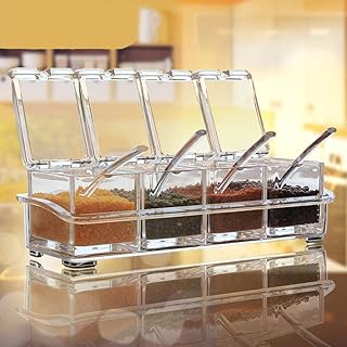 NYAL ENTERPRISE Home Kitchen 4 Grid Acrylic Seasoning Spice Box Kit with Spoon - Kitchen Masala Storage Box Container Seasoning Organizers Jars