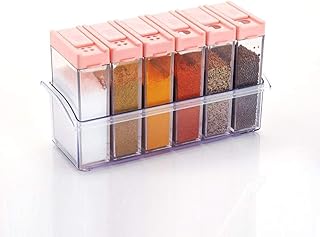 TDO Crystal Seasoning Box Pepper Salt Spice Rack Plastic 6 Masala Box Kitchen See Through Storage Containers