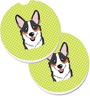 Caroline 's Treasures Checkerboardライムグリーンコーギー2カップホルダー車コースターのセットbb1317carc、2.56、マルチカラー