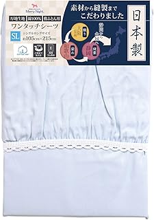 メリーナイト サックス シングルロング 日本製 綿100% 厚地生地 敷布団用 ワンタッチシーツ 6300-76