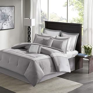 HNU 8点セット グレー ビクトリア調 掛け布団セット カリフォルニアキングサイズ 高級寝具 掛け布団セット 無地 幾何学模様 モダン コンテンポラリー ホワイトストライプ 刺繍 ソフト 快適 スタイリッシュ エレガント ニュートラルパレット