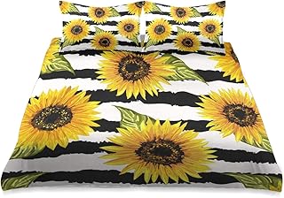 ひまわり 花柄 ストライプ 掛け布団セット クイーンサイズ 掛け布団セット オールシーズン ソフトで快適な寝具セット 90 x 90インチ クイーン desdgawyu167