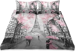 エッフェル塔 パリ フランス 掛け布団セット キングサイズ カバー 掛け布団セット カバー オールシーズン ソフトで快適な寝具セット カバーカバー 90x104インチ