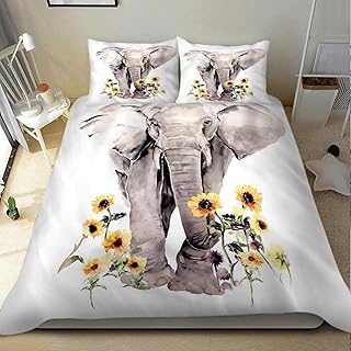 LOVINSUNSHINE 象 ひまわり 掛け布団セット ツインサイズ オールシーズン ダウン掛け布団 ソフト フラシ天 象 掛け布団セット 子供用 2点(68 x 88)