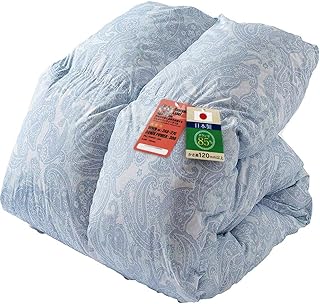 アイリスプラザ 羽毛布団 シングル ホワイトダックダウン85% 日本製 CILレッドラベル ボリュームたっぷり アレルゲン低減 国内洗浄 抗菌防臭 パワーアップ加工 やわらか ペイズリー柄 ブルー