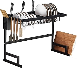 xinxin-home水切りラック キッチンラック 水切りかご ステンレス製 滑り止め 大容量 キッチン 包丁スタンド 食器乾燥棚 鍋蓋スタンド キッチン収納棚 箸入れ まな板立て 調味料ラックサクションカップ付き フック付き (二層)幅55×奥行28×高さ55cm
