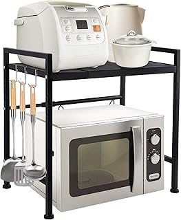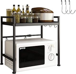 LZSHOME レンジラック レンジ上ラック 電子レンジ台 キッチンラック トースターラック 幅伸縮式 棚板高さ三段調節可 約W40~60×D32×H49cm 省スペース ステンレス製 耐荷重70kg ブラック