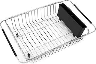 SANNO 伸縮水切りかご スライド式水切りバスケット 食器水切りかご キッチンラック カトラリーホルダー付き ステンレス製