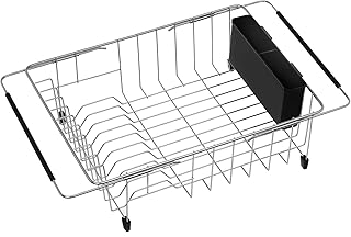 iPEGTOP 伸縮水切りかご スライド式水切りバスケット 食器水切りかご キッチンラック カトラリーホルダー付き ステンレス製