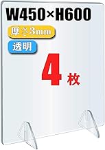 アクリル板 透明 パーティション 強度バージョンアップ 飛沫防止 W450*H600mm 対面式スクリーン デスク用仕切り板 コロナウイルス 対策、衝立 飲食店 オフィス 学校 病院 薬局 角丸加工 組立式(4枚 W450×H600 窓なし)