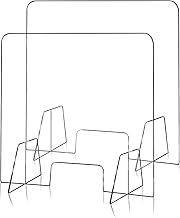 パーテーション 透明 アクリル板 W450×H500mm 厚さ4mm 2枚セット 飛沫防止 ウイルス対策 感染予防 角丸加工 特大足付き 組立式 簡単設置 デスク用仕切り板 衝立 卓上 スクリーン オフィス 受付 商談 飲食店 学校 病院 薬局など用 間仕切り (W450×H500mm 窓あり 2枚セット)