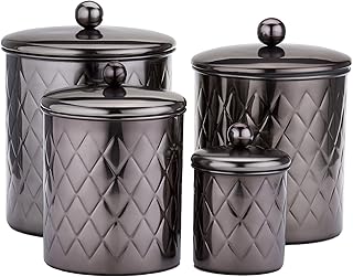 Old Dutch 1863BM 4個 ブラックミラーエンボスダイヤモンド、4、3、2、クォートキャニスターセット 11.5クォート