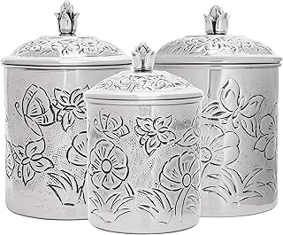 Old Dutch International エンボスバタフライキャニスターセット 3個 4個 2個 1.5個 グレー