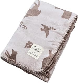 D's collection もこもこ ひざ掛け ブランケット ハーフケット フォレスト森の動物 (ベージュ, ひざ掛け【70×100cm】)