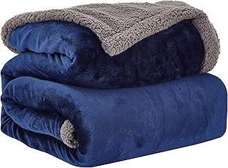 DACANS(ダカンス)発熱二枚合わせ毛布 ダブル 掛け毛布 シープ調 ボア フランネル ふわふわ 軽い 暖かい柔らかい 洗える ふんわり 丸洗いOK 抗菌防臭 防ダニ加工 あったか ブランケット 大判 無地 ボア フリース生地 秋冬用 あったか ネイビー ダブル・180X200cm