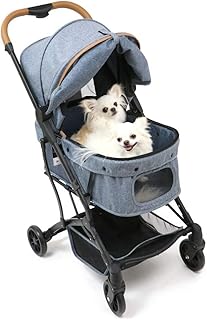 犬 ペットカート 夏 ペットパラダイス | コンパクトカート(青)犬 猫 ペット カート 小型犬 多頭飼い 4輪 折りたたみ キャリー おしゃれ デニム 伸縮ハンドル 大型メッシュ窓 ドリンクホルダー