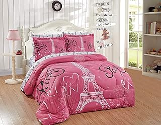 Better Home Style ピンク ホワイト ブラック パリ エッフェル塔 ボンジュールデザイン 掛け布団寝具5点セット 寝具一式シーツセット # FS パリピンク (ツイン)