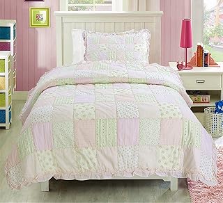 Cozy Line Home Fashions ピーチレース フローラル ピンク グリーン オーキッド ローズ フラワー プリント パッチワーク 100% コットン キルト 寝具セット ベッドスプレッド ベッドカバー 赤ちゃん/小さな女の子向け ピンク ツイン - 2ピース