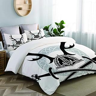 布団枕カバー 3点セット MIMUTI 寝具カバー シングル アントラーズとバイキングの刀とヘルメットケルトサークル中世野蛮人 洋式・和式兼用 掛け布団カバー ボックスシーツ 四季適用 ベッドカバーセット (150 x 210cm)