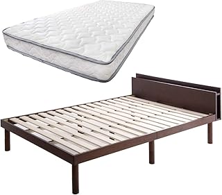 タンスのゲン 【マットレス付】 すのこベッド ボンネルコイル シングル 天然木 スマホスタンド 2口コンセント ブックシェルフ 3段階高さ調節 耐荷重:約200kg マットレス 高密度352個 圧縮梱包 ベッド:ブラウン マットレス:ホワイト 49600125 01