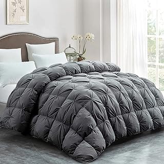 ZHONGHONG 掛け布団 ダックダウン掛け布団キルト Palatial King 120 x 98インチ グレー ピンチプリーツ掛け布団 100%コットン生地 厚手 ふわふわ羽毛掛け布団 オールシーズン対応 バッフルボックスデザイン 00803