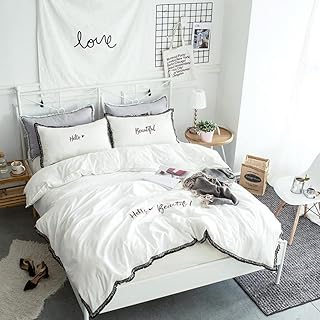 綿100% ベッドシーツ 寝具カバー 布団カバー 4点セット フリル ボックスシーツ ピローケース 枕カバー シンプル 無地 北欧 モダン 可愛い ベッド用品 ダブル キング コットン 白 グレー ピンク