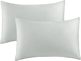 枕カバー 綿100% サテン織り 300本高密度 封筒式 カバーのみ ピローケース 色褪せない 光沢がある 滑らか 柔らかい 防ダニ 抗菌 防臭 ホテル品質 (43x63cm, ホワイトストライプ)
