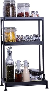 ZHOHO TANT スパイスラック オーガナイザー 3段スパイスラック キッチンカウンタートップ バスルームストレージシェルフ スパイスカトラリー バスルームアクセサリー ブラックステンレススチール