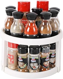 YCOCO 2段 Lazy Susan ターンテーブル プラスチック スパイスラック オーガナイザー キャビネット用 360度回転 スパイスラック キャビネット パントリー バスルーム ホワイト 1個セット