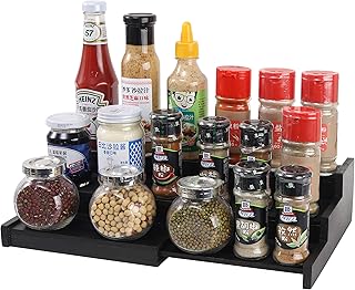 Veesun 拡張可能なスパイスラック オーガナイザー キャビネット キッチン カウンタートップ パントリー用 スタンディング スパイスオーガナイザー 幅調節可能 3段