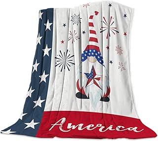 スローブランケット ノーム 星条旗柄 ソフト 通気性 暖か 快適 フランネル フリース ベッドブランケット ベッドスプレッド ホーム ソファ カウチ 椅子 リビング ベッドルーム オールシーズン 愛国的な花火 40x50