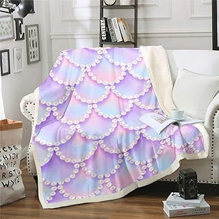 Erosebridal マーメイド 魚のうろこ フリースブランケット 女の子用 フラシ天ベッドブランケット 魚のうろこ パールデザイン スローブランケット ピンクうろこ フランネル スロー ルームデコ ベッドブランケット ホーム ホテル 寮の部屋用スロー 50x60インチ