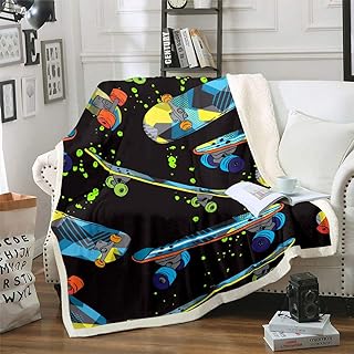 Erosebridal スケートボード フランネル ブランケット ヒップホップ シェルパ ブランケット スポーツゲーム ゲーム スローブランケット グラフィティ ヒッピー ゲーマー ベッドブランケット 子供 男の子 女の子 ティーン 部屋 寮 装飾 暖かいフラシ天 スロー