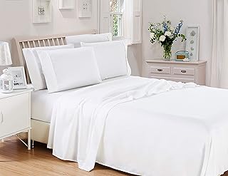 Marina Shades 4ピースシーツセット 800スレッドカウント ホワイトクイーン エジプト綿100%シーツセット ソフトでラグジュアリーな寝具 17インチまでのマットレスにフィット