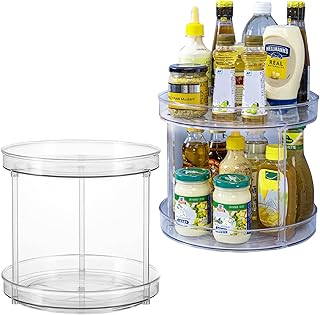 Lazy Susan 2段 円形 プラスチック クリア 回転式 ターンテーブル 整理 10.5インチ 円形 ターンテーブル ストレージ トレイ キャビネット パントリー キッチン 化粧台 カウンタートップ バスルーム メイクアップ 冷蔵庫用