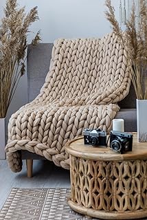 MLMGUO ニットスローブランケット ソファ用 ハンドメイド ニット チャンキーブランケット スロー ソファベッドギフト チャンキーニットブランケット (キャメル 40インチ x 60インチ)