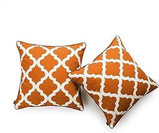Hofdeco 装飾用クッションカバー 屋内 屋外 防水 キャンバス メープルオレンジ モロッコ四つ葉 18インチx18インチ 2個セット