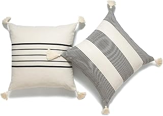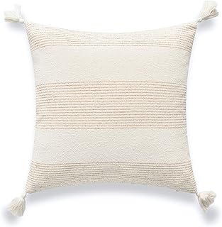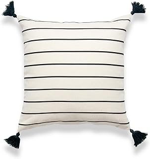 Hofdeco モロッコ風タッセルニュートラル装飾枕カバーのみ ベージュの黒ずみストライプ 18インチx18インチ