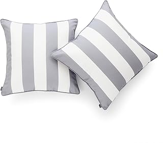 Hofdeco インドアアウトドア枕カバーのみ 防水 パティオラウンジソファ用 グレーホワイトストライプ 18インチx18インチ 2枚セット