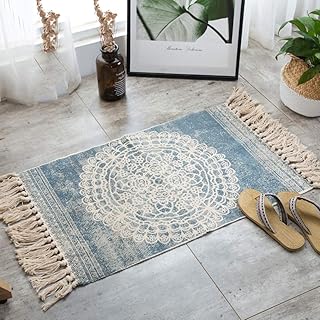 玄関マット おしゃれ ラグ 綿麻 手織り エスニック フリンジ付き ギャッベ風 インテリア カラー マット モダン 60*90cm キッチン オールシーズン ラグカーペット フリンジ付き 手織りラグ インテリア ラグマット 民族風 かわいい レトロ