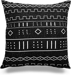 Hofdeco アフリカンマッドクロスピローカバーのみ、ブラック幾何学ストライプ、18インチx18インチ