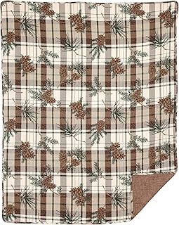 C&F Home ルックアウトロッジ キャビンウッド 素朴な松ぼっくりキルトスローブランケット コットン 洗濯機洗い可 リバーシブル 快適 カウチソファ用 50x60インチ ブラウン
