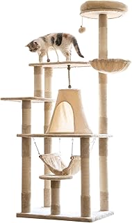 Mwpo 富士山ようなハウス キャットタワー 猫タワー 大型猫 麻紐 172cm 巨大サイズ 2つハンモック 匂いなし 多頭飼い 転倒防止 安定性 022A