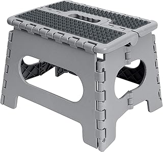 Simplify グレー 丈夫で安全 持ち運び用ハンドル 開けやすい キッチン バスルーム 寝室 大人用 9インチ 滑り止め折りたたみステップスツール 軽量