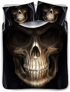 BIGCARJOB スカル羽毛布団カバー キング グレー スケッチ スカル 寝具 布団カバー ジッパー開閉 マイクロファイバー 3点(掛け布団カバー1枚+枕カバー2枚) ボーイズ メンズ